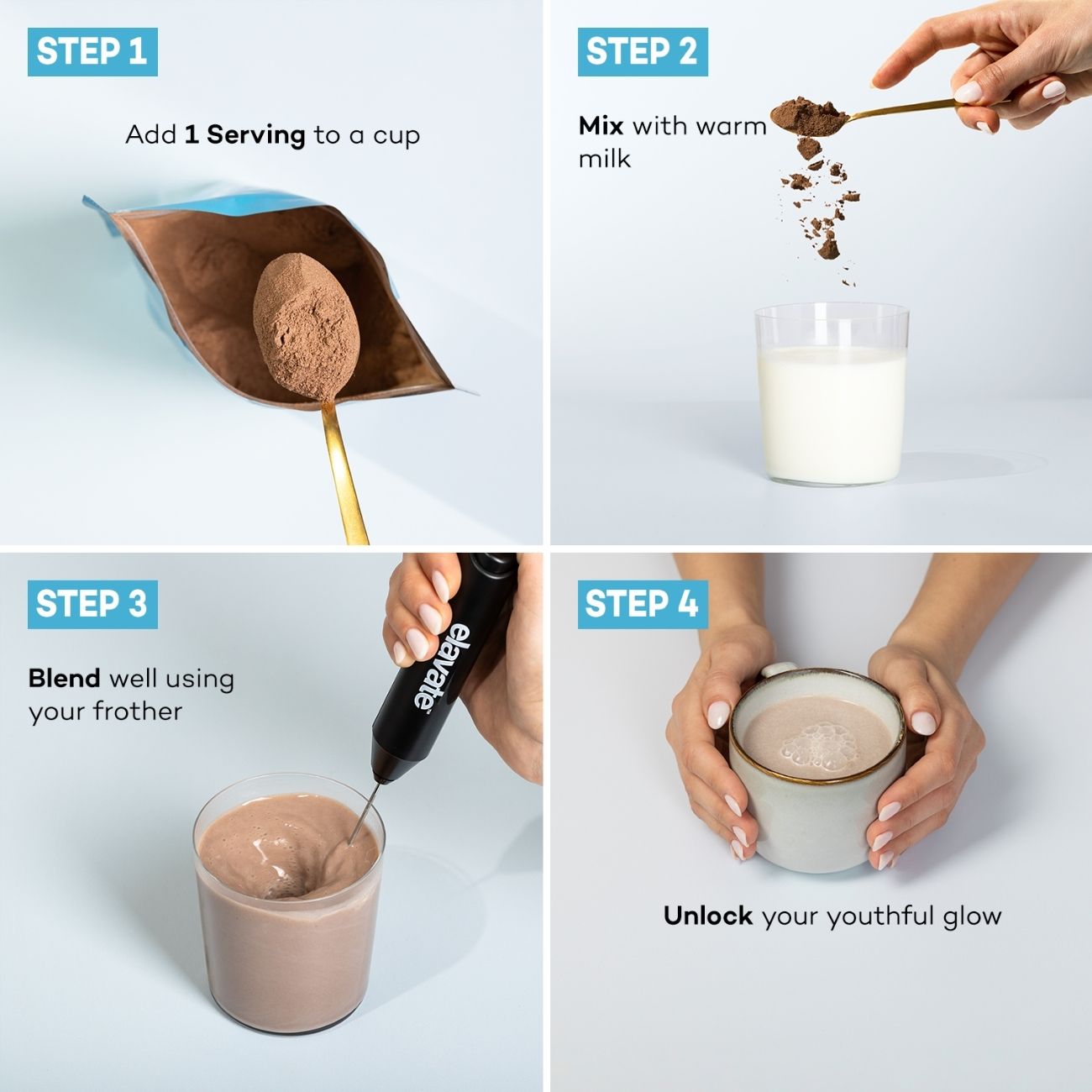 Elavate has a delicious rich Chocolate Flavour and it tastes best when mixed with warm milk, creating a Creamy Hot Chocolate!